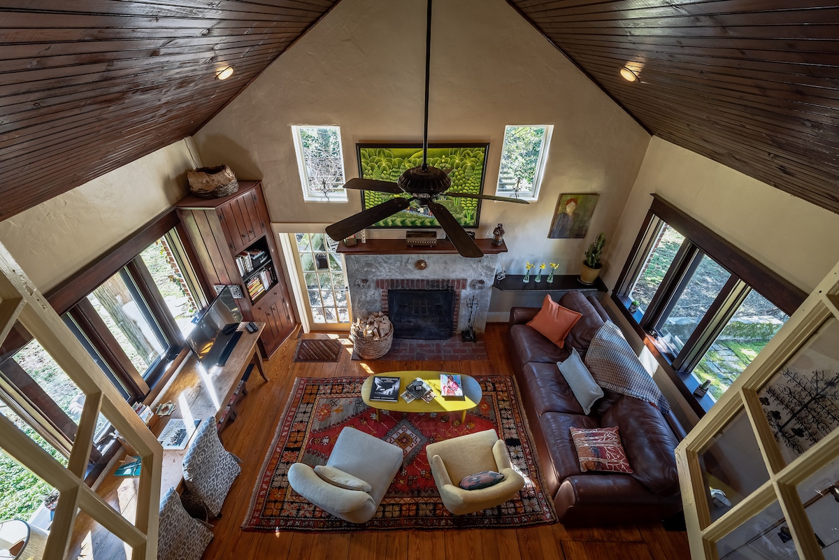 Ubicado en el corazón de Frenchtown Nueva Jersey, encontrarás encanto escondido en los exuberantes jardines de River Witch Cottage. • Recupérate en una lujosa cama tamaño queen. • Prepara una comida sencilla en la cocina totalmente equipada • Nutrete en el encanto de un comedor íntimo • Reclínate con comodidad junto a una hermosa chimenea de gas • Rejuvenece en los chorros de la bañera de hidromasaje, sumergiéndote bajo el resplandor natural de los tragaluces • Tómate un café por la mañana o un vino por la noche en el tranquilo entorno del patio privado al aire libre.