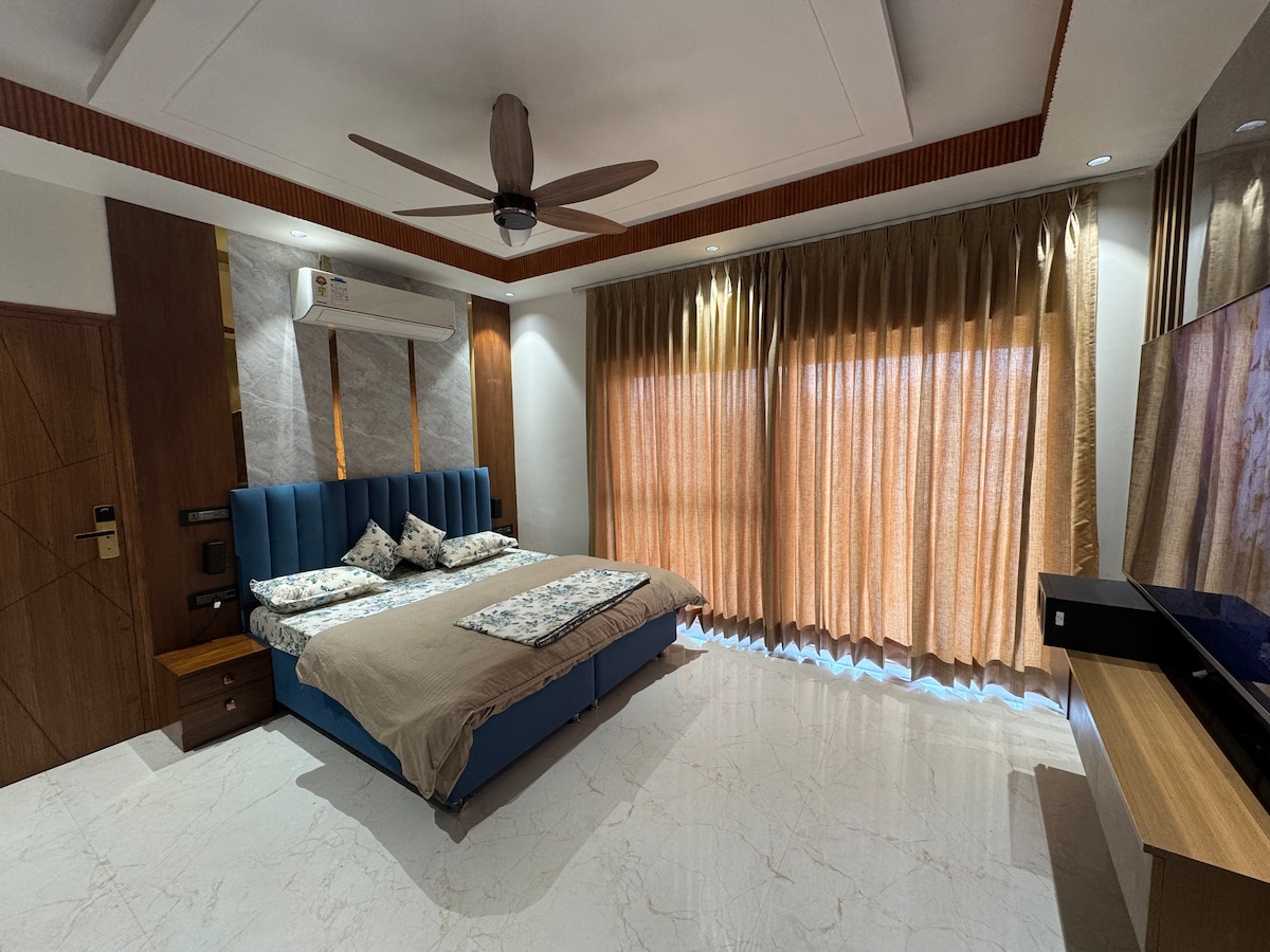 Gracias por elegir "The Aaki Palace" Delhi 'No 1, Ultra Lujoso y Muy Espacioso [210 yardas cuadradas] Hermosa y espaciosa sala de estar con televisor inteligente de gran tamaño de 65 pulgadas, zona de comedor dedicada, cocina totalmente equipada y espaciosa Muy cerca de Yashobhoomi, a 5 minutos en coche y con conexión directa con la autopista y el aeropuerto internacional, bien comunicado con la estación de metro Dwarka Sector 8 y 9 Estamos muy bien valorados y tenemos experiencia en hospitalidad desde hace cinco años, con más de 5 sucursales en Delhi