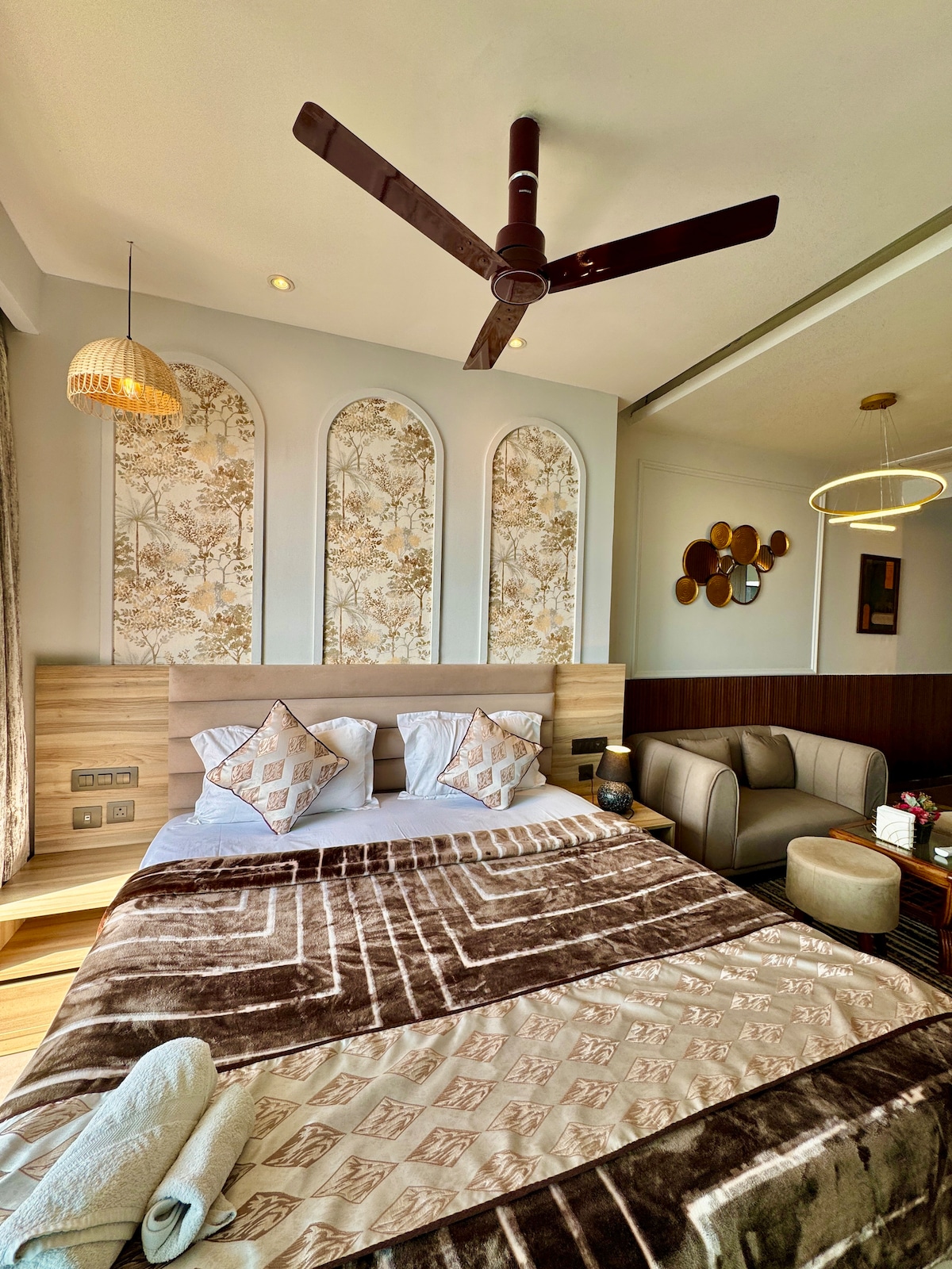 Luxury apartment Noida | River view room | Private serviced apartment | High-rise luxury stay | Balcony room Noida | Business stay Noida Private luxury studio apartment Located on 31st floor River view & city skyline views Private balcony with seating King-size bed with premium bedding Stylish sofa seating area Dedicated work desk & Smart TV High-speed Wi-Fi Functional kitchenette Modern bathroom with LED mirror Air-conditioned, well-lit interiors Ideal for business & leisure stays