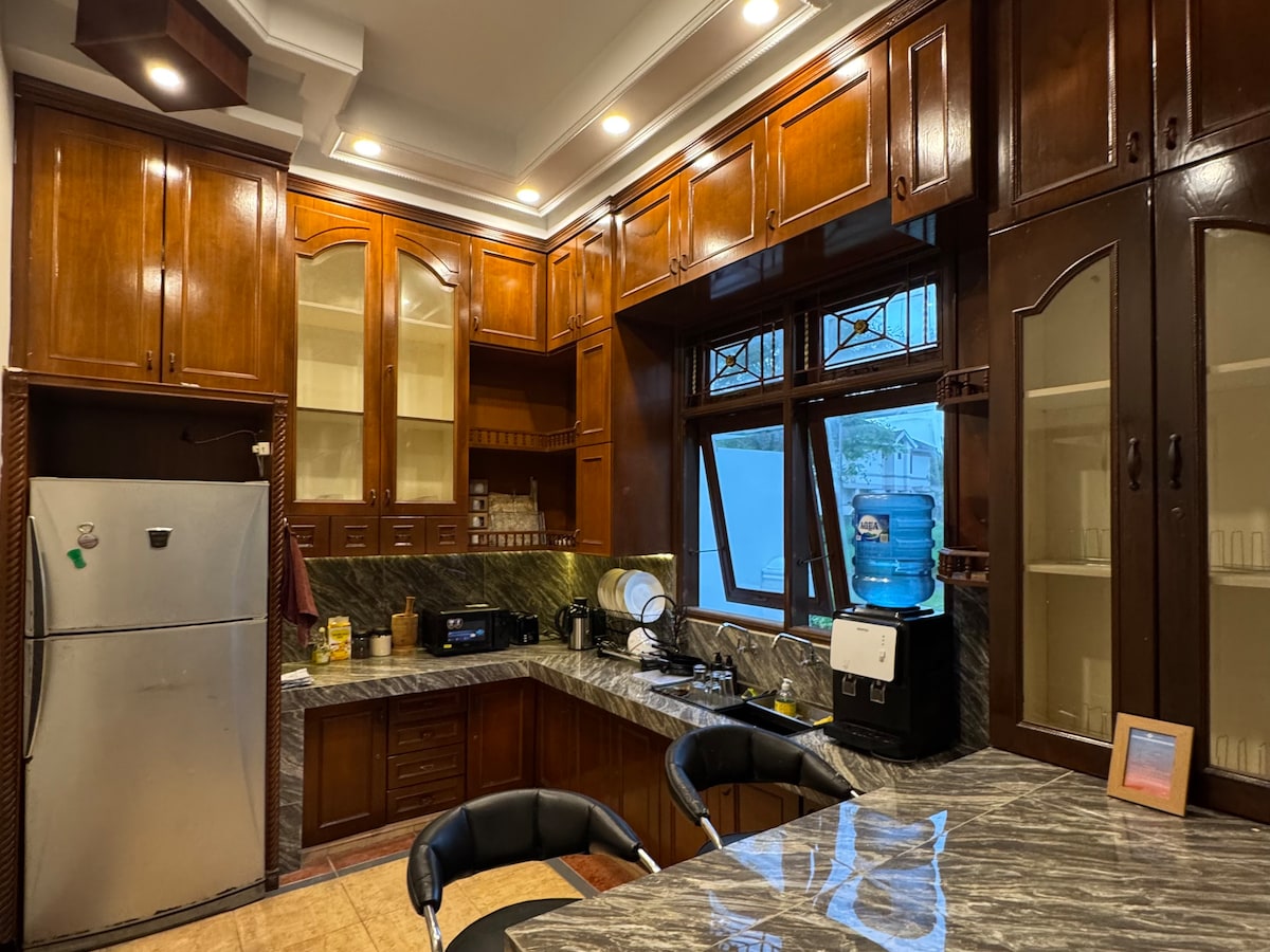 Villa de lujo clásica, una cómoda villa en medio del frío de la ciudad de Berastagi, una ciudad de zona montañosa, con una hermosa vista y una vista de las montañas. Ambiente acogedor y seguro, también está cerca de la cafetería y la tienda de comestibles. También hay acceso a otras atracciones turísticas cerca. La posición está cerca del hotel Kalangulu, a Mickey Holiday está a unos 500 metros y a 2 minutos de la ciudad de Berastagi. Hay 4 dormitorios tamaño king y también hay 5 estrabed adicionales, Wifi y Android TV están disponibles para karokean.