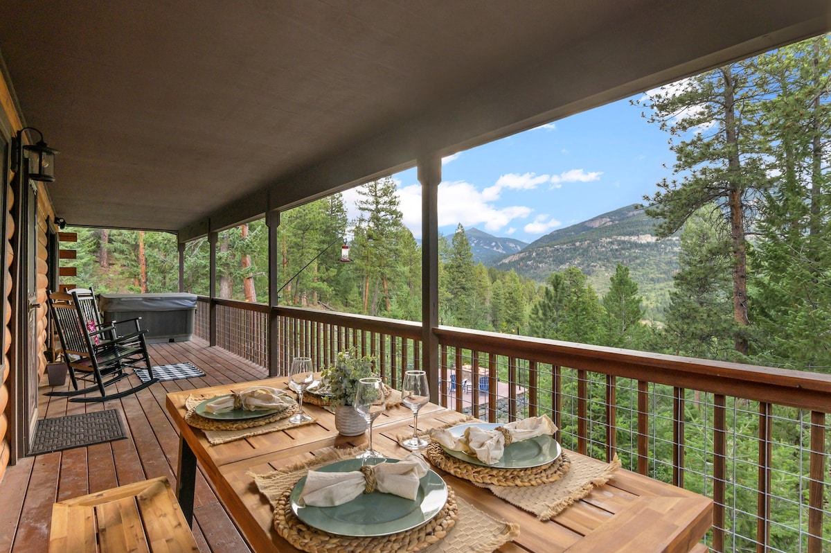 The Rock House: Disfruta del refugio definitivo: una bañera de hidromasaje en la naturaleza, azulejos calientes en el baño, impresionantes vistas de Longs Peak, Internet Starlink, aislamiento, silencio sereno, en una cabaña de las Montañas Rocosas de 80 años recién terminada. Este acogedor santuario es moderno con un toque de lujo. Disfruta de aceites/especias/azúcar/café bien surtidos y de una cocina totalmente equipada. Descansa en un sillón de cuero, envuelve una bata suave y prueba con el fumador de pellets de 1000 metros cuadrados para una aventura culinaria. Licencia: STR-22-113