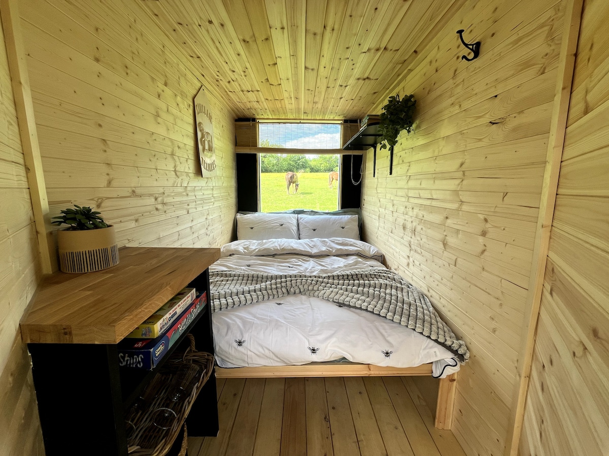 A truly unique little spot, surrounded by our horses. Quirky, nature filled little escape on our rustic farm. Untether from the fast pace of life, even with excellent transport links close-by. Overlook our fields and views of the horses and greenery. Shared glamping bathroom and kitchen facilities. Enjoy the firepit outside and the cosy views inside. Adult only.