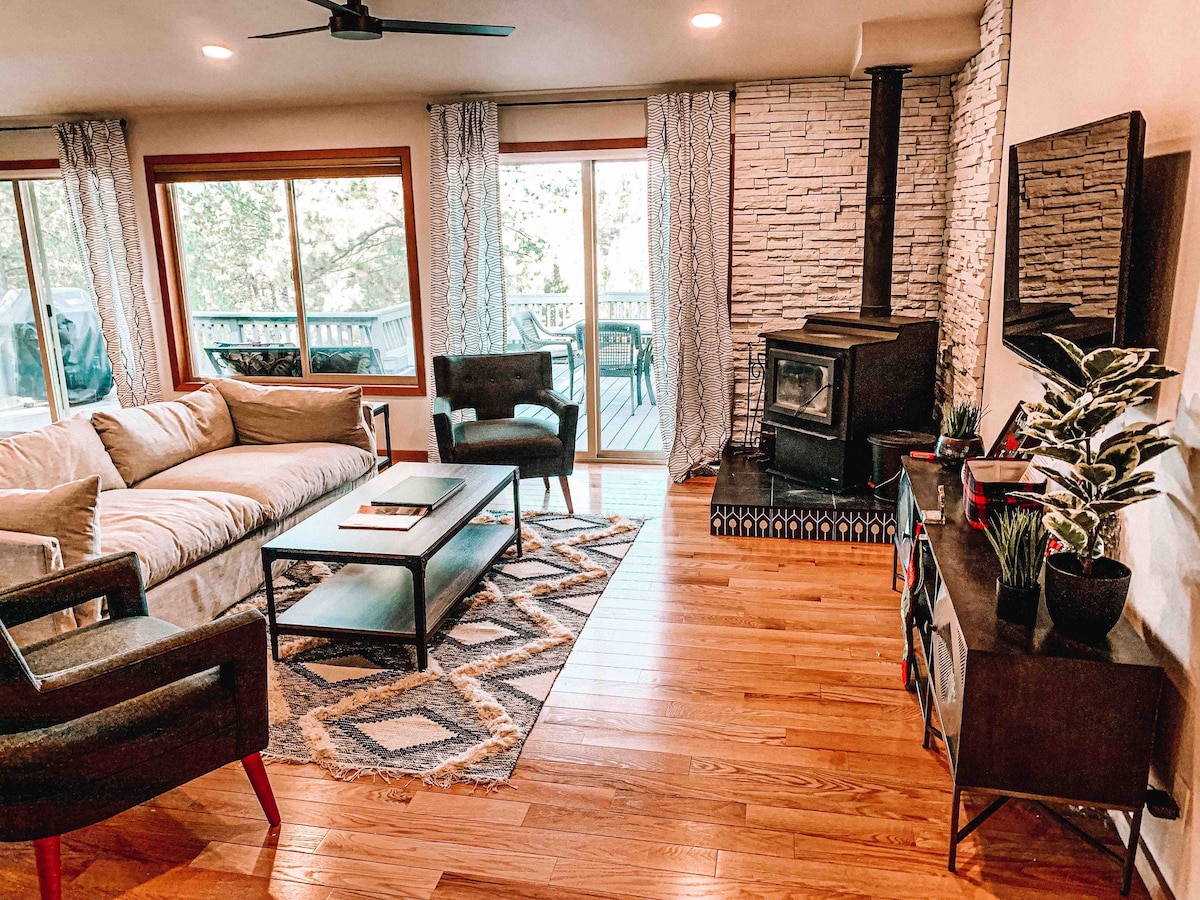 Esta casa de Bend, Oregón, es la escapada perfecta. Tiene capacidad para seis personas y te mima con camas tamaño king, electrodomésticos de alta gama, servicios de spa, jacuzzi y otros espacios al aire libre a los que puedes retirarte. El moderno entorno está equipado con todas las comodidades que encontrarías en casa, como una cocina totalmente equipada, libros, juegos, wifi, espacio de escritorio y un televisor de 65 pulgadas con streaming. El plano de planta abierta con dos sofás es perfecto para descansar en un día de ocio o reunirse durante algún tiempo junto al fuego.