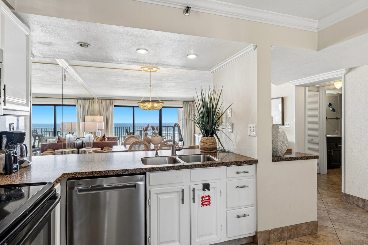 Apartamento de 1 dormitorio y 2 baños recientemente renovado con literas incorporadas. Situado junto a la playa, en el piso 19, con impresionantes vistas panorámicas a las aguas esmeralda y las playas de arena blanca prístina del golfo de México. Cocina totalmente surtida con nuevas encimeras de granito y electrodomésticos de pizarra. Internet de alta velocidad fiable y rápido en todas partes. Los servicios del centro vacacional incluyen una gran piscina y jacuzzi, un bar tiki junto a la playa que sirve bebidas heladas y cerveza. Una fabulosa cafetería que sirve desayunos calientes, pizza, sándwiches y ensaladas.