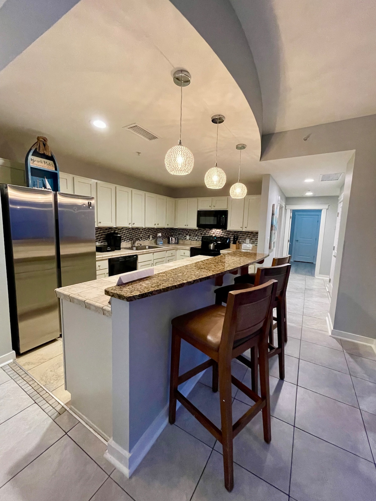 Condominio Tidewater en el piso 16 frente al golfo con hermosas vistas al mar desde el balcón. Este diseño de 2 dormitorios + litera tiene capacidad para 8 personas y es ideal para familias y grupos. Las características incluyen 3 baños completos, suite King, dormitorio Queen, rincón de literas, sofá cama, WiFi rápido, televisor inteligente de 70", lavadora/secadora y una cocina totalmente surtida. Fácil acceso a la playa, a pie de Pier Park y servicios del centro vacacional que incluyen piscinas, jacuzzis, restaurantes y Starbucks. Se proporcionó una guía clara para hacer el check-in, incluidos consejos para evitar los horarios de mayor actividad de los ascensores.