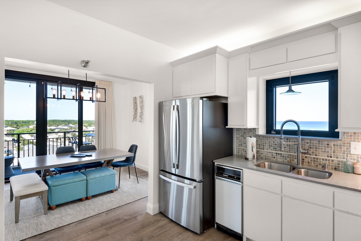 Estudio abierto elegante en el 8.º piso con impresionantes VISTAS, frente a la playa en Sandestin Resort entre Destin y 30A. 🛺 Carrito de golf con más de 5 noches. NUEVA piscina y bañera de hidromasaje. Muebles West Elm y cama tamaño king con vista al mar. Cocina elegante con lavavajillas y Keurig. Wifi, TV inteligente de 55". Lavadora/secadora. Enorme balcón para contemplar el mar. Disfruta de la playa, los restaurantes, las tiendas, los senderos, el golf y el entretenimiento sin salir del resort. Pase de tranvía y gimnasio. Ideal para luna de miel, «baby moon», viaje de chicas, viaje en solitario o vacaciones en familia *No se admiten animales