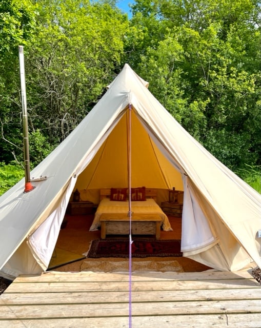 Para la mejor experiencia familiar en Somerset, ven y quédate en nuestro galardonado safari de Somerset, enclavado entre los árboles de nuestro aislado huerto de 6,5 acres, en el borde del hermoso Parque Nacional de Exmoor. Todos los interiores están hechos a mano, con la tienda principal que tiene una pequeña cocina, una cama doble elevada, baño con ducha, red eléctrica con calefacción a través de un hermoso quemador de madera. En el exterior hay una zona de patio cubierta, barbacoa y zona de fogata, lo que lo convierte en la escapada perfecta, ¡sea cual sea el clima!