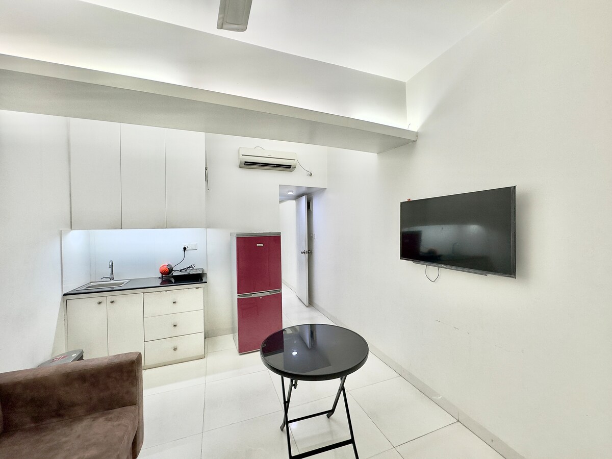¡Busca una estadía de corta duración en Daca cerca del aeropuerto de Daca! Ubicado en el área residencial de Bashundhara. Presentamos el nuevo apartamento estudio de 394 pies con todas las instalaciones modernas: -1 dormitorio, 1 sala de estar y cocina abierta, 1 balcón y 1 baño. -1 cama tamaño queen para 2 huéspedes, 1 sofá cama, aire acondicionado , wifi de alta velocidad, TV 4K, horno microondas, refrigerador, hervidor de agua eléctrico, plancha, juego de cocinas,géiser, perking gratuito. Servicio de pago Piscina, restaurante, servicio de lavandería, gimnasio. “No se admiten parejas no casadas”.