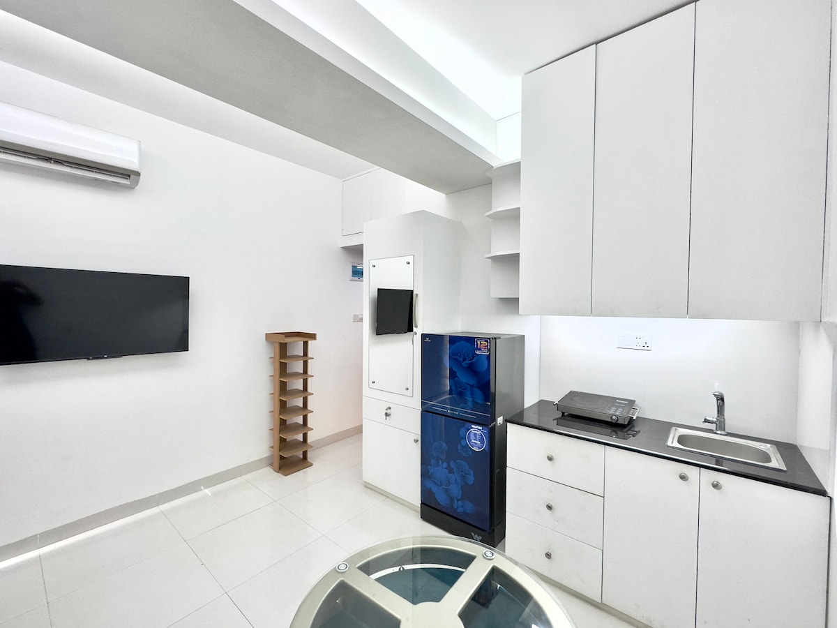 Te damos la bienvenida a nuestro departamento tipo estudio de 250 pies cuadrados. ✦ Nuestro edificio cuenta con muchos servicios: * Piscina * Sala multiusos con escenario * Cine (50 asientos) * Sala de oraciones * Gimnasio totalmente equipado * Baño de vapor * Estación de barbacoa en la azotea * Pista para correr y jardines en la azotea con asientos. * Sala de estar * Seguridad las 24 horas, 7 días a la ✦ También ofrecemos servicios: * Limpieza de habitaciones y baños * Servicios de lavandería * Recogida de basura * Comida (se proporcionará el menú) * Traslado y recogida en el aeropuerto ¡Que tengas una buena estancia!