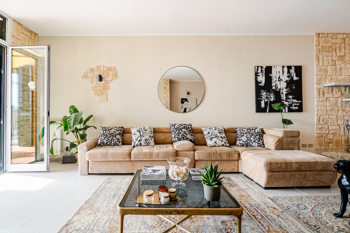 Suite Imperial, 120 mq, all’interno di una villa storica di fine ’800 finemente ristrutturata. Ambienti ampi e luminosi con vista mare totale e panoramica sulla costa. Dispone di cucina attrezzata, bagno di servizio, camera matrimoniale con ingresso indipendente e bagno en-suite, elegante living con divano letto, area Smart TV con streaming e letto singolo in stile napoleonico. Accesso al parco e alla piscina a sfioro vista mare.