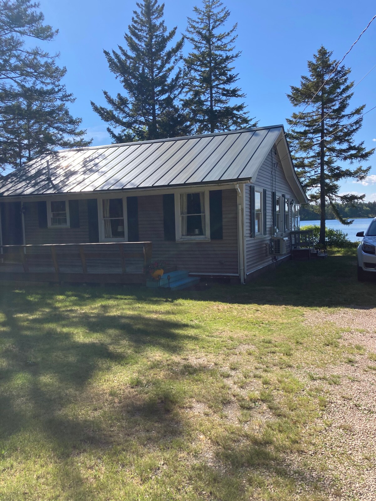 Lakefront home steps from Gardner Lake, Whiting, Maine. Tile floors, wood interior, granite countertops, dishwasher, w/d, radiant heat and heat pump. Awesome views/sunsets. Deck/grill. Shared water access with adjacent cabin. Wi Fi. Roku tv - No cable. Message owner for long term rates. Long term stays require references. Extra twin bed and cot in basement living area. Adjacent cabin if available in summer for additional fee. No pets. No smoking of anything or vaping on premises.
