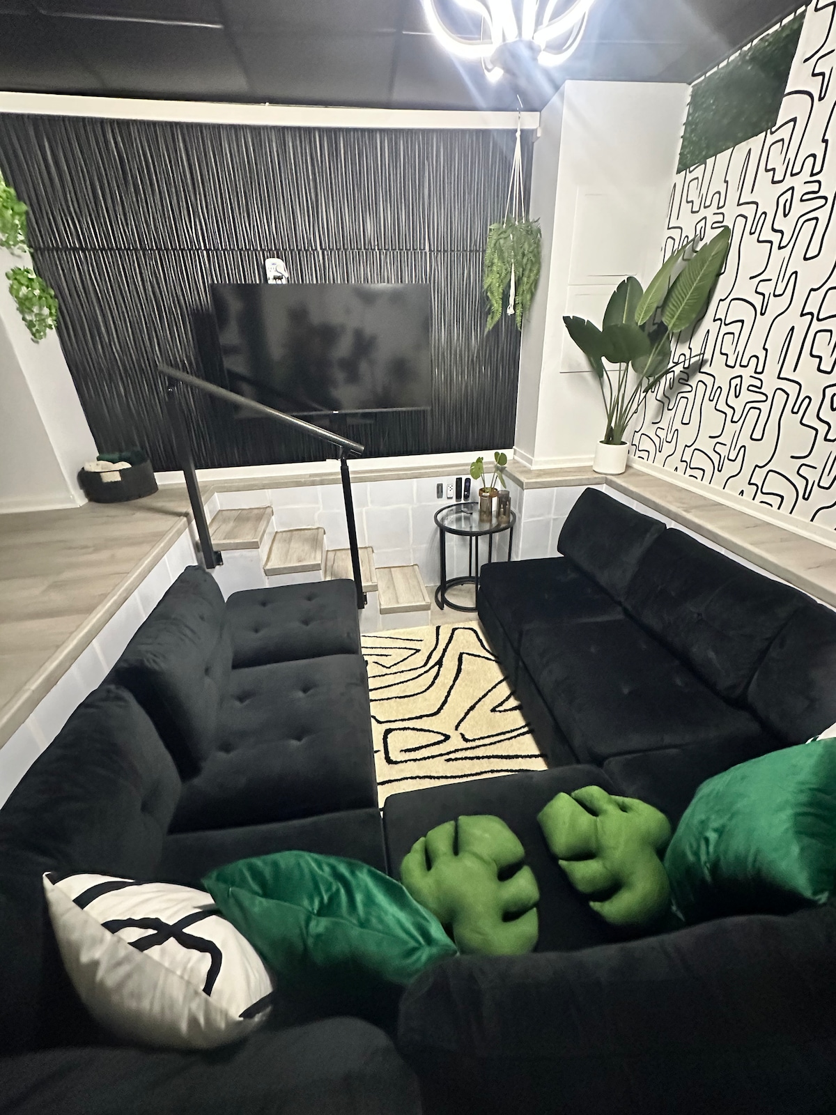 ¡Te damos la bienvenida a una experiencia de vida de diseño ecléctico! Crearás recuerdos en esta casa única de 5 dormitorios para familias. Incluye una amplia cocina totalmente equipada con utensilios de cocina, platos y electrodomésticos de acero inoxidable. Esta casa también cuenta con una sala de juegos con mesa de billar y juegos de arcade. Incluye una terraza de madera completa con muebles de patio, una parrilla y un pozo de fuego, todo sellado en una valla para tu privacidad. A solo 7 millas de Fort Gregg-Adams y a 4 millas de VSU.