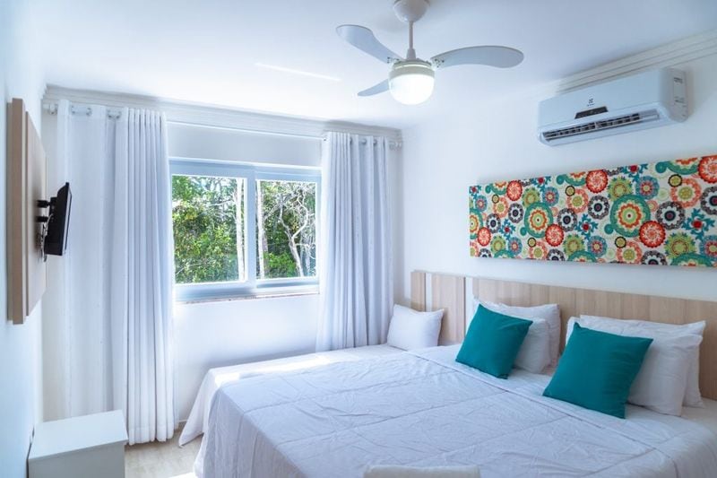 Diseñados especialmente para aquellos que viajan en familia, nuestros apartamentos con vistas al jardín ofrecen la comodidad y la practicidad que te mereces durante tus vacaciones en Arraial d'Ajuda. El departamento cuenta con: * Espacio compacto, acogedor y funcional. * Aire acondicionado, minibar, microondas y cocina. * 1 cama doble y 2 camas individuales; En la zona común del condominio, toda la familia disfruta de: * Quiosco con barbacoa; * Ducha exterior; * Amplio estacionamiento.