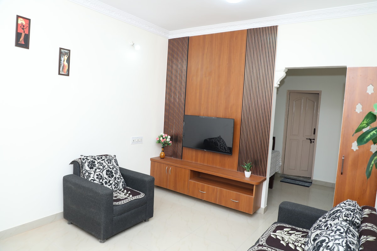 Una estancia acogedora y bellamente decorada en el corazón de Electronic City. Con un salón luminoso, un comedor elegante y un dormitorio cómodo con un espacio de trabajo dedicado, es ideal para familias, amigos, parejas y viajes de trabajo por igual. La casa cuenta con una cocina funcional totalmente equipada, lo que hace que las estancias más largas sean cómodas y agradables. Diseñado cuidadosamente pensando en el amor y la comodidad, nuestro objetivo es hacer que tu estancia sea cálida, relajada y memorable.