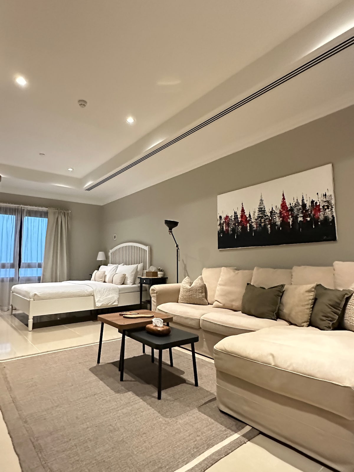 Despierta con brillantes vistas al puerto deportivo en este espacioso apartamento 1BR en Porto Arabia, The Pearl-Qatar. Disfruta de un balcón privado, cama tamaño king, 1,5 baños, cocina completa, armarios empotrados y una amplia sala de estar con un televisor inteligente de 65 pulgadas. Ideal para parejas, huéspedes solitarios o viajeros de negocios. Supermercado SPAR en la planta baja, además de cafeterías y tiendas cercanas. Incluye wifi rápido, estacionamiento, lavadora, sábanas limpias y seguridad las 24 horas. Silencioso, elegante y a pocos pasos del agua, ¡tu escapada perfecta a Qatar!