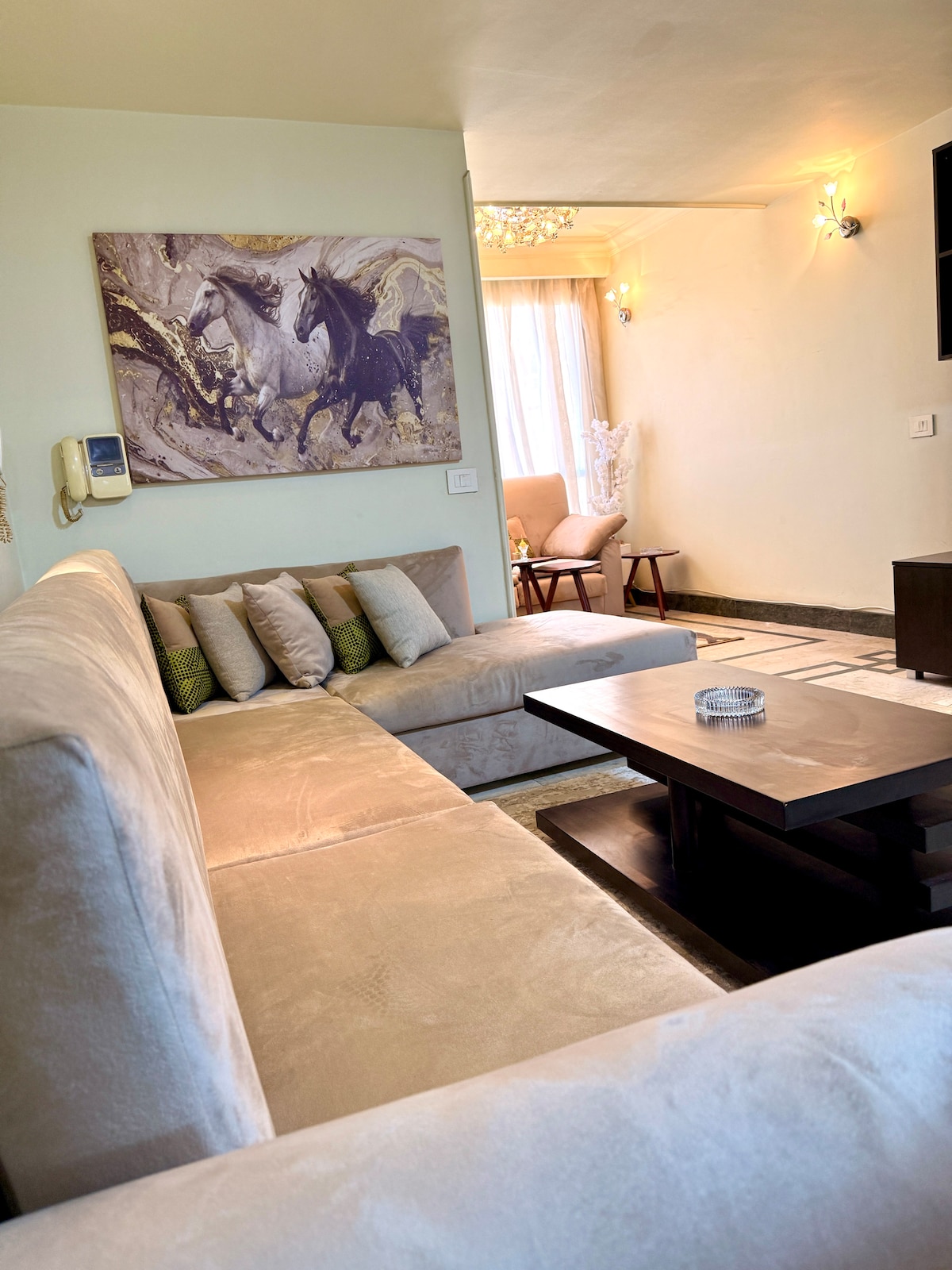 شقه مناسبه للشباب والعوائل فرش فندقي ساوند سيستم اول سكن ٢ حمام غرفه سويت بدريسنج وغرفة شباب ٢ شاشه مكيف بالكامل تكييفات جديده سخانات اريستون بالحمامات جميع الاجهزه جديده بالقرب من النيل وجميع المواصلات والفنادق
