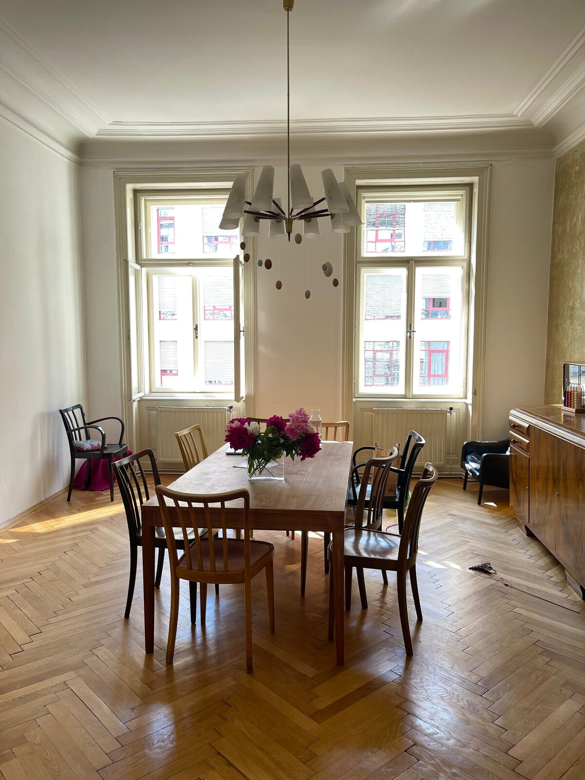 Este apartamento recientemente renovado ofrece tres dormitorios principales y dos baños. En este increíble apartamento de estilo Jugendstil encontrarás muebles de diseño, una cocina de alta calidad y mucho arte. El apartamento es enorme y ofrece mucho espacio para un grupo de amigos, familias o personas que viajan por negocios. El apartamento se encuentra en el primer piso (ascensor disponible) en una fantástica casa Jugenstil en el distrito 4, justo al lado del Naschmarkt.
