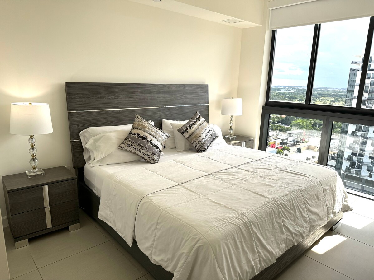 Modern suite with excellent view in Downtown Doral itself. 16th floor 1 Queen Bed, 1 Bathroom, Wifi, Cable TV, Executive Refrigerator, Microwave, Coffee Maker (No kitchen). HOTEL-type Suite has an independent entrance. Parking is not included. Parking must be paid by the guest. Points of interest: → Publix → Restaurants. → Housekeeping service (Optional) $80 extra. → 12 min from INT Airport. →East access to highways: Palmetto, Florida Turnpike and Dolphin.