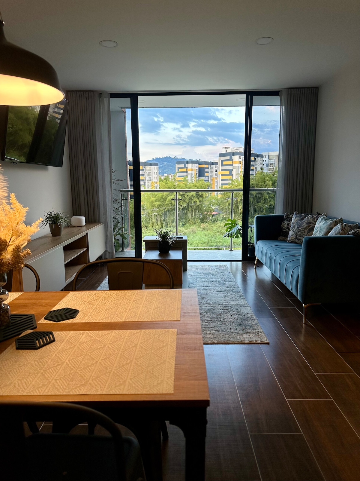 Descubre la comodidad y la placentera estancia en nuestro impecable apartamento Ubicado en un tranquilo conjunto residencial con vistas a las montañas, cada día será un paraíso al despertar. Disfruta de las comodidades que ofrecemos: piscina, cancha, parque infantil, lavandería, estacionamiento privado y vigilancia las 24h. El apartamento está equipado con todo lo necesario, incluido wifi, te hará sentir como en casa, incluso estando lejos de ella. Bienvenido a tu refugio de serenidad y confort.