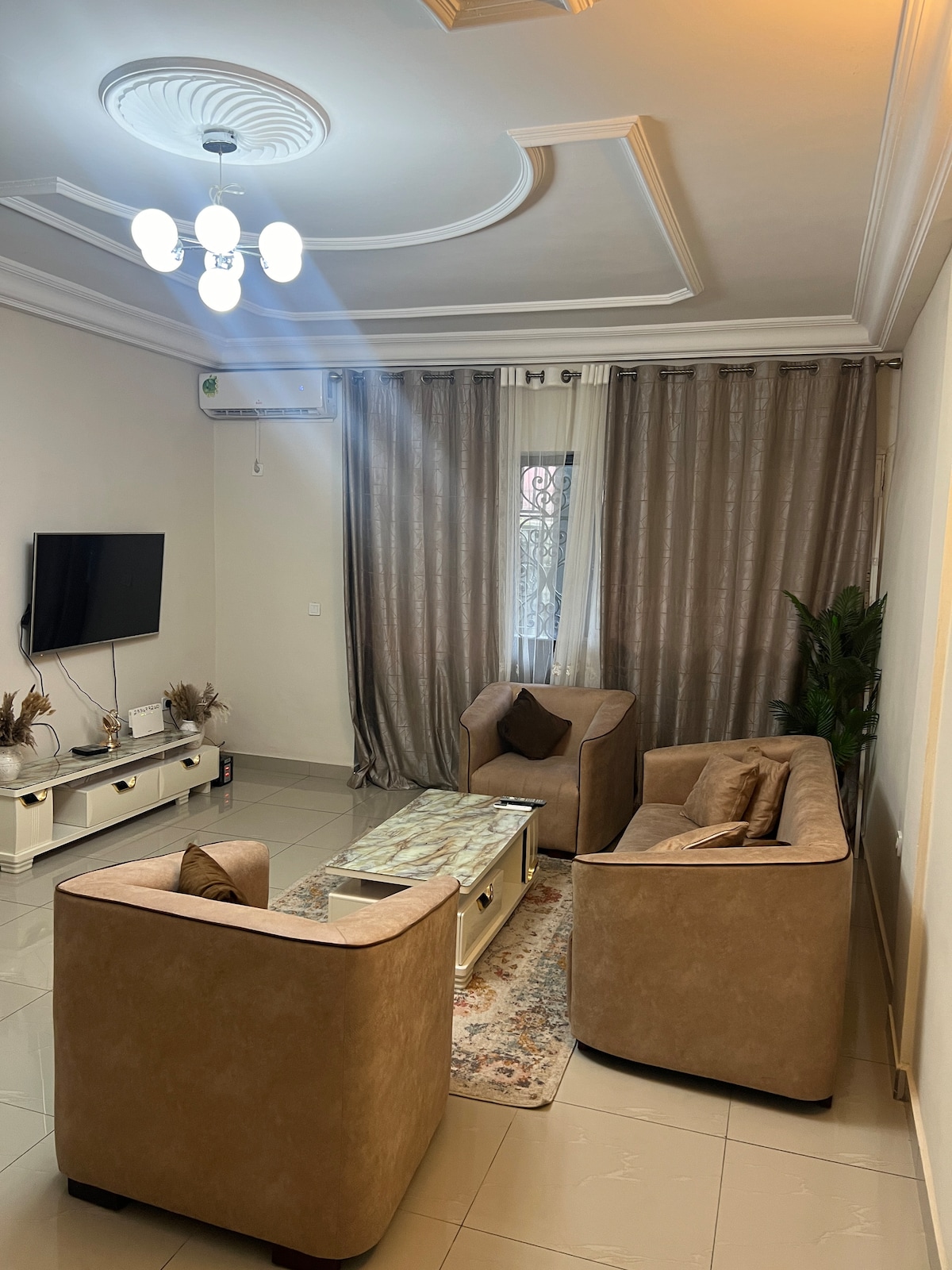 Acogedora casa de huéspedes de 2 dormitorios en Bali, Douala, cerca de Carrefour Kayo Eli. Amplia sala de estar, cocina totalmente equipada y aparcamiento privado. Perfecto para estadías de corta duración. Contacto para reservas y detalles. Electricidad 24/7 (Gen), Internet Starlink, seguridad 24/7.