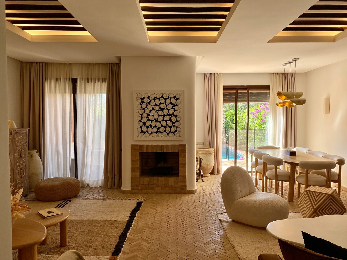 Descubre nuestra villa en el prestigio Samanah Golf Club, que ofrece paz y serenidad. A 15 mn del centro, y del aeropuerto, esta villa de 200 m² cuenta con varias terrazas, un jardín privado exotico y una piscina totalmente privada (calefactable bajo petición en hivierno) con sus atardeceres típicos. Disfruta del magnífico campo de golf diseñado por Nicklaus y del canto de los pájaros. Una experiencia con un ambiente artesanal marroquí Beldi Chic para una estancia inolvidable. Seguridad 24/7