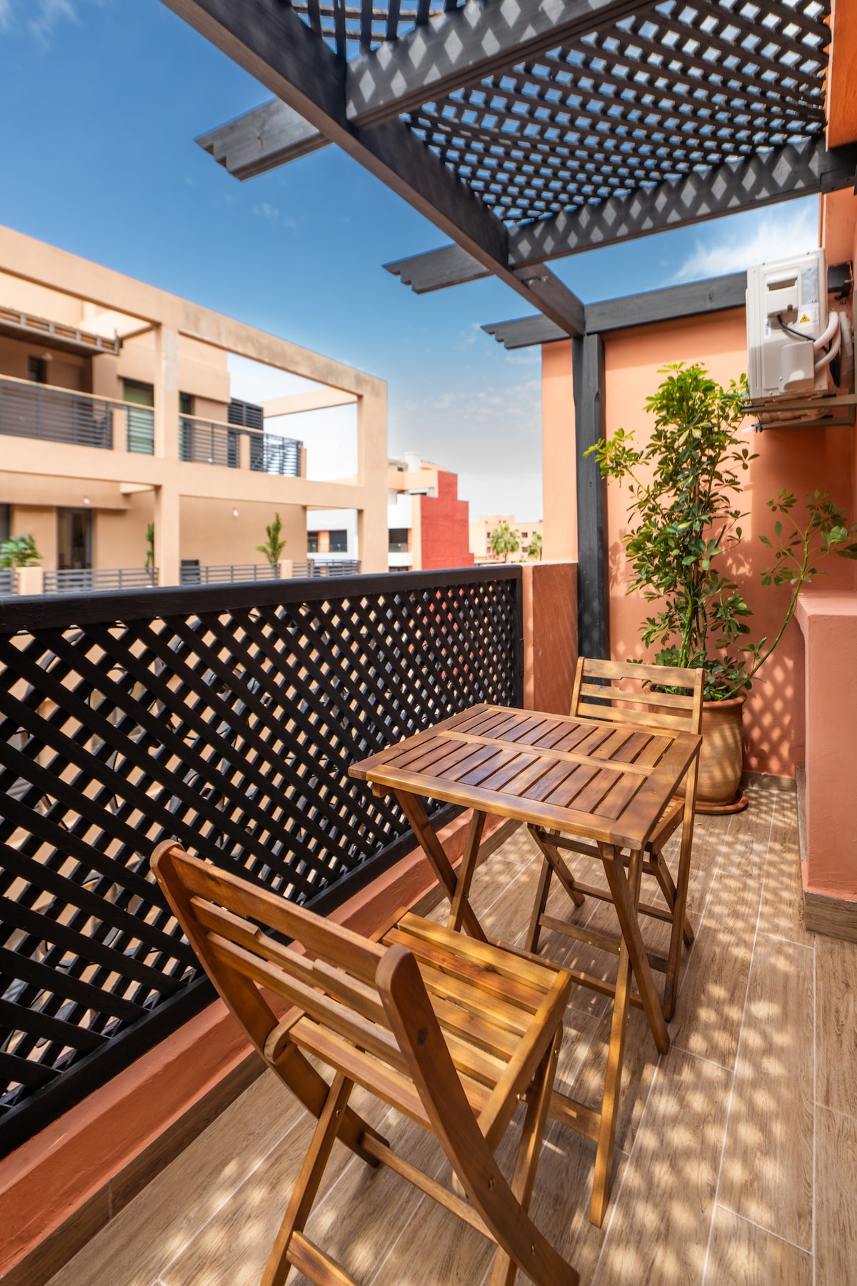✨ Apartamento de lujo con terraza, aparcamiento y aire acondicionado🥶 - Centro de Marrakech ✨ Disfruta de una estancia prémium en este moderno refugio, totalmente climatizado, en el corazón de Marrakech. Este alojamiento refinado ha sido diseñado para combinar diseño contemporáneo, comodidad absoluta y equipamiento de alta gama: terraza privada, aparcamiento seguro, ropa de cama de calidad hotelera... Perfectamente situado, le garantiza una experiencia única, tranquila y elegante, a dos pasos de los lugares más bellos de la ciudad.