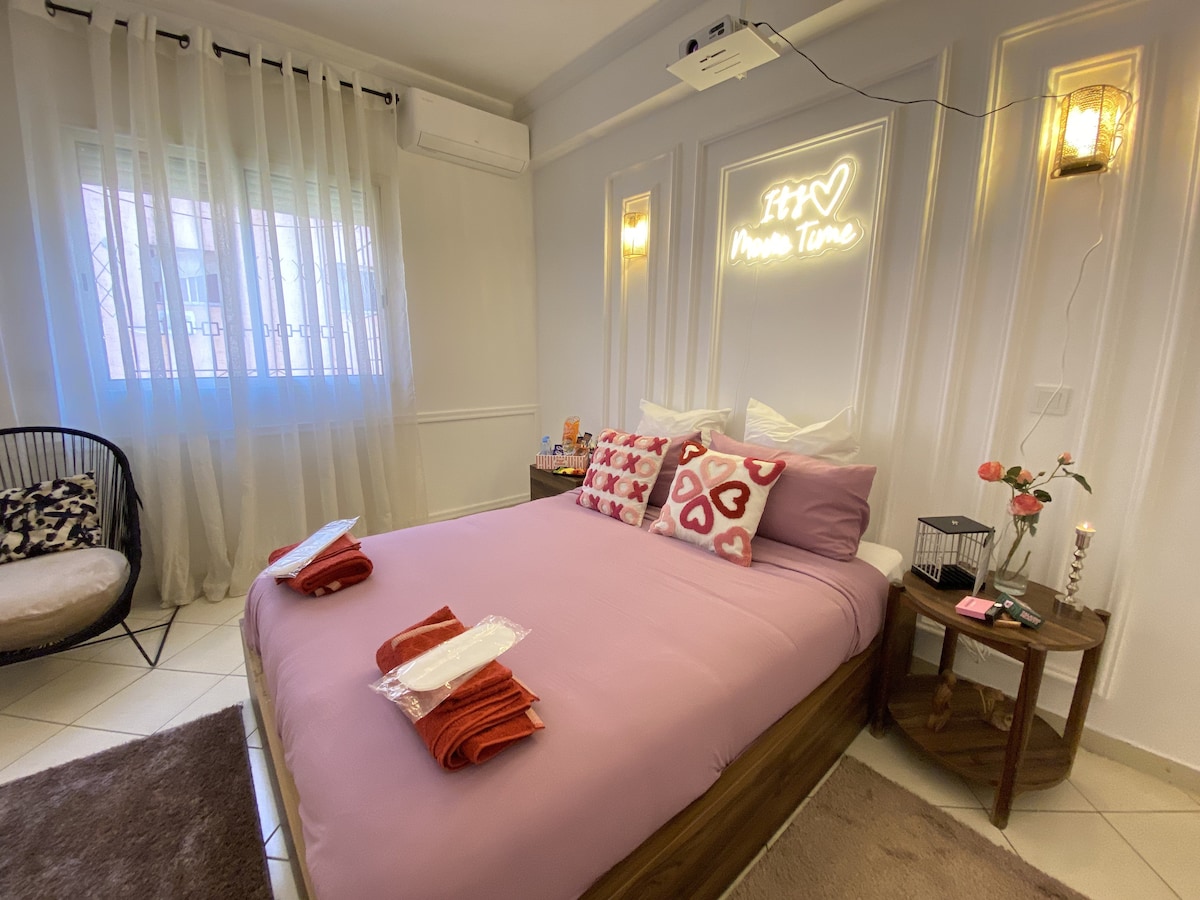 Apartamento de lujo en Gueliz, experiencia de dormitorio de cine