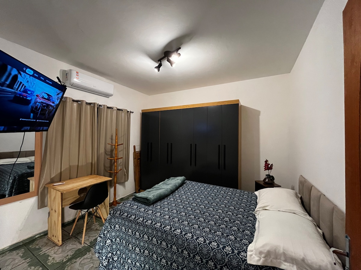 Ubicación privilegiada en relación al Cerrado Brasil, Centro de Convenciones de Dourados, HU, a 300 metros del punto que pasa el autobús directo a las universidades (UEMS y UFGD - Unidad 2) etc. Relájese en este espacio tranquilo y elegante. Practicidad y comodidad son los requisitos de los artículos que encontrará, empezando por el colchón y el aire acondicionado. El filtro de agua, el refrigerador de 340L y la cocina de inducción te invitan a cocinar, hacer café/té, preparar un tereré, bebida típica Guaraní - MS.