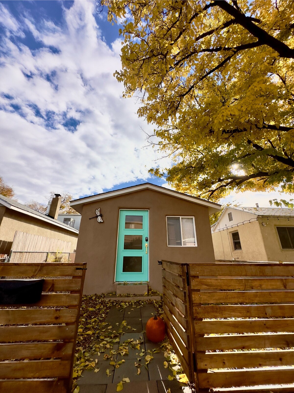 Esta moderna casita de estilo suroeste se encuentra cómodamente en nuestra histórica propiedad de adobe de 1923 que combina materiales antiguos y comodidades modernas. Construida por un artista, aporta un toque moderno a tu aventura en Albuquerque. Casita significa casita en español, y esta casita es completamente una casa. Cuenta con cocina completa, cama tamaño king, ducha de cascada, patio privado y puertas de entrada que fusionan el hermoso exterior de NM con nuestro acogedor interior. Permiso: 052140