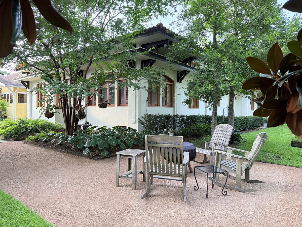 Bienvenido a nuestra encantadora casa de cuento de hadas Tudor centenaria, enclavada en el corazón del histórico distrito de jardines de Baton Rouge. Esta joya arquitectónica tiene capacidad para 12 personas y combina el encanto de una época pasada con todas las comodidades modernas que puedas desear, lo que garantiza una estancia inolvidable. Al cruzar la entrada, te transportarás por el estilo atemporal y el carácter distintivo de la casa. Te sentirás como en casa en este gran refugio único.