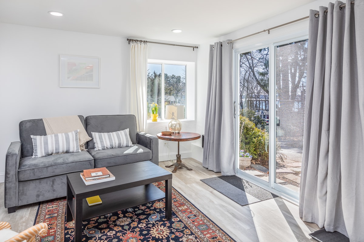 Luminoso y alegre apartamento de 1 dormitorio en la planta baja con dos plazas de aparcamiento en una calle tranquila en el barrio de Ocean Park de Marblehead, a pocos pasos del mar. Cama de matrimonio y sofá cama de matrimonio en la sala de estar, baño privado con calefacción por suelo radiante, cocina americana con microondas, lavavajillas, fregadero, placa de inducción doble, nevera y horno tostador. Acceso a la lavandería. Camina hasta el paseo marítimo y observa los veleros que pasan. A quince minutos a pie del centro histórico de la ciudad.