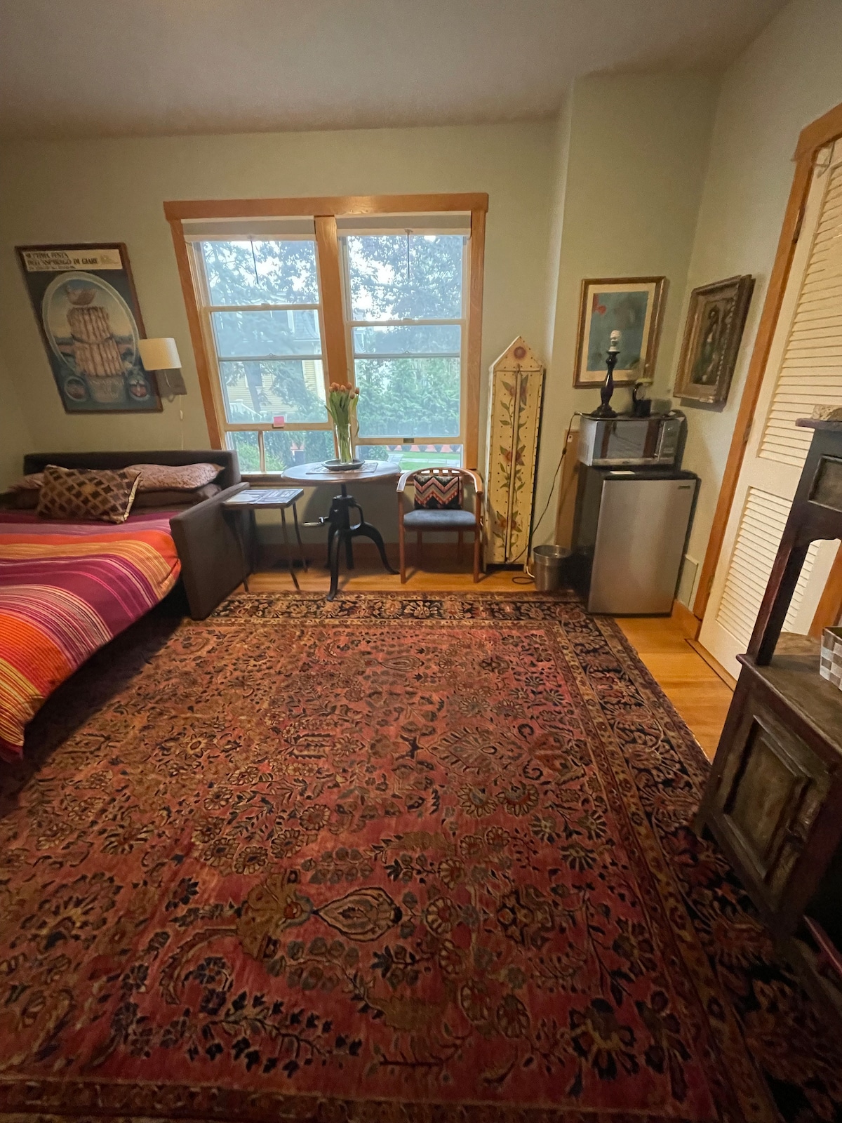 Suite totalmente amueblada con entrada privada; acceso a pie a nivel del suelo. Ventana con vistas al gran patio trasero y acceso a él. Salas de estar y dormitorios separados (cama de matrimonio), escritorio/espacio de trabajo, baño con ducha, cocina americana con nevera pequeña, cafetera y microondas (sin fogones). Hay comida para llevar cerca. No se admiten mascotas ni se permite fumar. ¿Coche? Hay estacionamiento cubierto fuera de la calle. ¿No tienes coche? El autobús 71 a Harvard Square se detiene en nuestra esquina; a pocos pasos de otros autobuses y transporte público.