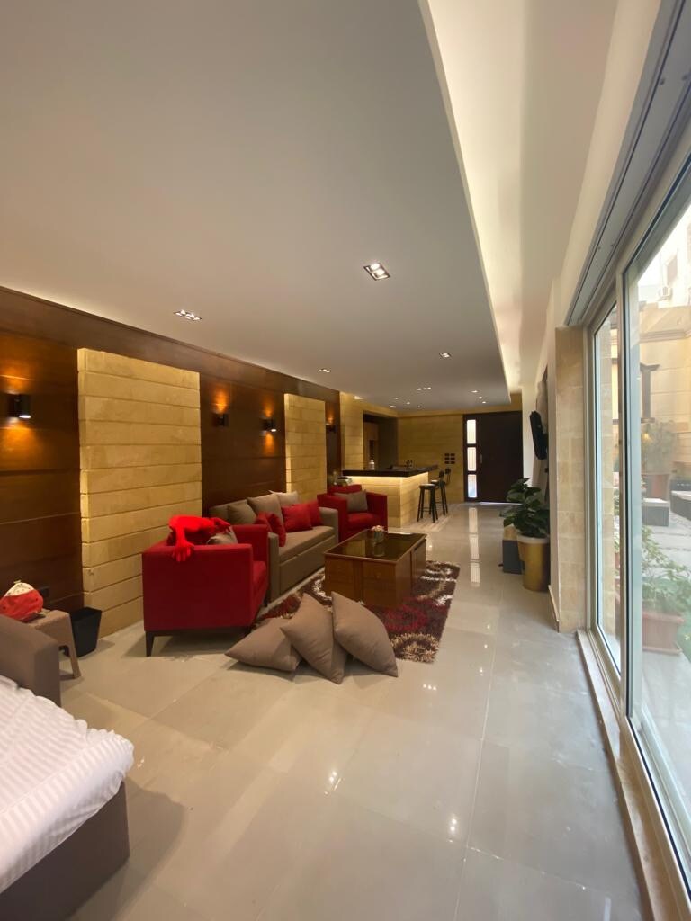Bienvenido a este increíble y espacioso apartamento en el sótano ubicado en el barrio de élite de El Shouyaifat, Nuevo Cairo. Si bien es una unidad de piso inferior, ha sido diseñada por un diseñador de interiores de primer nivel, transformándolo en un santuario de lujo. Inmaculadamente limpio, elegante y muy grande, este sótano ofrece una experiencia de vida increíble, a pocos segundos del centro de New Cairo y sus lugares de interés. Asegúrate de leer las reglas de la casa antes de reservar. ¡Disfruta del lujo en un sótano como nunca!