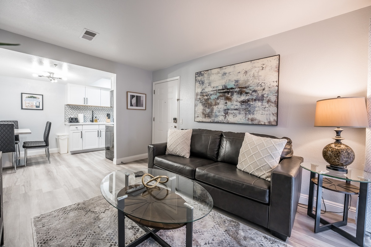 ¡Mantente con estilo en este apartamento ultramoderno y totalmente amueblado, a solo una manzana de Las Vegas Strip! Se encuentra junto a The Palms y enfrente del Río. Ventilador de techo en el dormitorio y la sala de estar. Wifi, lavadora/secadora, cocina totalmente equipada, nevera, microondas, horno y lavavajillas. Seguridad en el sitio las 24 horas, los 7 días de la semana. Recogida designada con Uber/Lyft en la parte delantera cerca de la casa club. Estacionamiento GRATUITO, sin tarifa del centro vacacional
