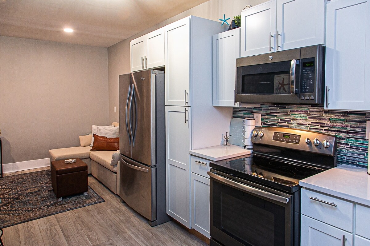 Sal por la puerta de nuestro apartamento céntrico y sumérgete en el vibrante corazón de Louisville, a solo unos minutos del centro de convenciones, los mejores restaurantes, las destilerías de bourbon y los animados lugares de entretenimiento. ¡El pase de aparcamiento gratuito al garaje del Actor's Theater al otro lado de la calle se suma a la comodidad y la experiencia elevada! Este hermoso condominio ofrece una lujosa cama tamaño king y un cómodo sofá cama, perfecto tanto para escapadas románticas como para excursiones familiares. Disfruta de servicios prémium, incluidos