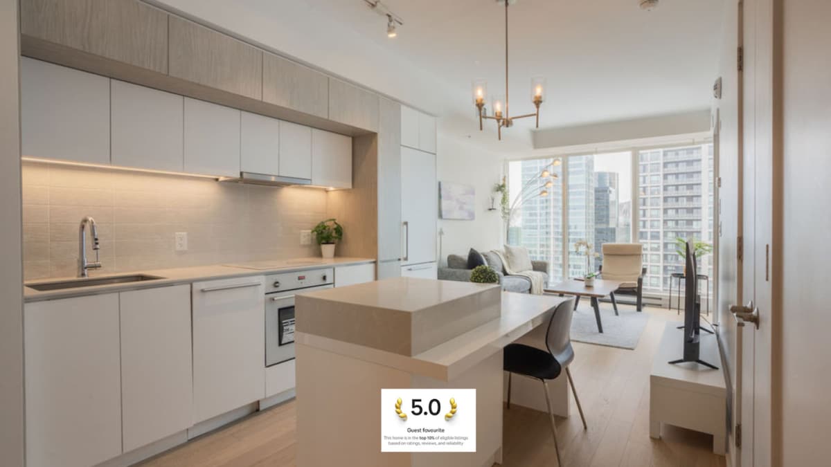 ¡Apartamento situado en pleno centro de la ciudad con acceso directo al Bell Center! Disfruta de tu estancia con lujo y comodidad en un apartamento de un dormitorio totalmente amueblado que incluye café, tostadora, hervidor de agua y todos los utensilios de cocina gratuitos. ¡Sauna, piscina, gimnasio con numerosas pesas y máquinas, salón panorámico, sala de juegos, salón y terraza con múltiples barbacoas a tu disposición! ¡Disfruta de un aparcamiento subterráneo gratuito y de un acceso a 1 minuto al sistema de metro sin tener que poner un pie fuera! Netflix incluido.