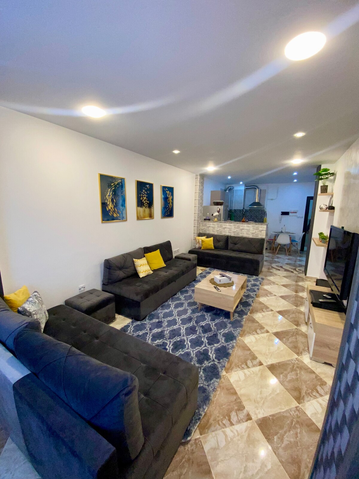 Acogedor apartamento en el corazón de Tizi-Ouzou. Amplio de 100 m², ideal para 4 personas con 2 dormitorios (1 cama king-size, 2 camas individuales), acogedor salón, cocina equipada y baño moderno. Situado en una 3.ª planta (sin ascensor), a 5 minutos del centro de la ciudad nueva y a 10 minutos de la estación de tren. Estilo minimalista, muy limpio, con agradables vistas a la salida de la ciudad. Wifi, aire acondicionado y lavadora incluidos. Check-in flexible a partir de las 15:00, check-out antes de las 11:00. No se permite fumar ni traer animales. IPTV disponible