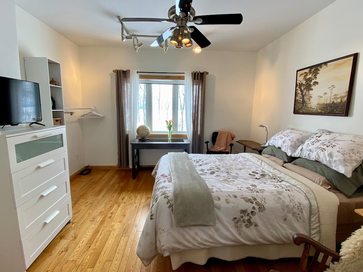 Kick back and relax in this calm, stylish space. Newly renovated guesthouse features 1 bedroom with queen bed, 1 bathroom, living room with a pull out couch, a fireplace, smart TV (you need your own Netflix/Prime account) and Wifi. Fully equipped kitchen with laundry onsite and spacious parking outside. Located on a quiet street with walking distance to a beach, marina, LCBO, grocery store, restaurants, gas station and bank.