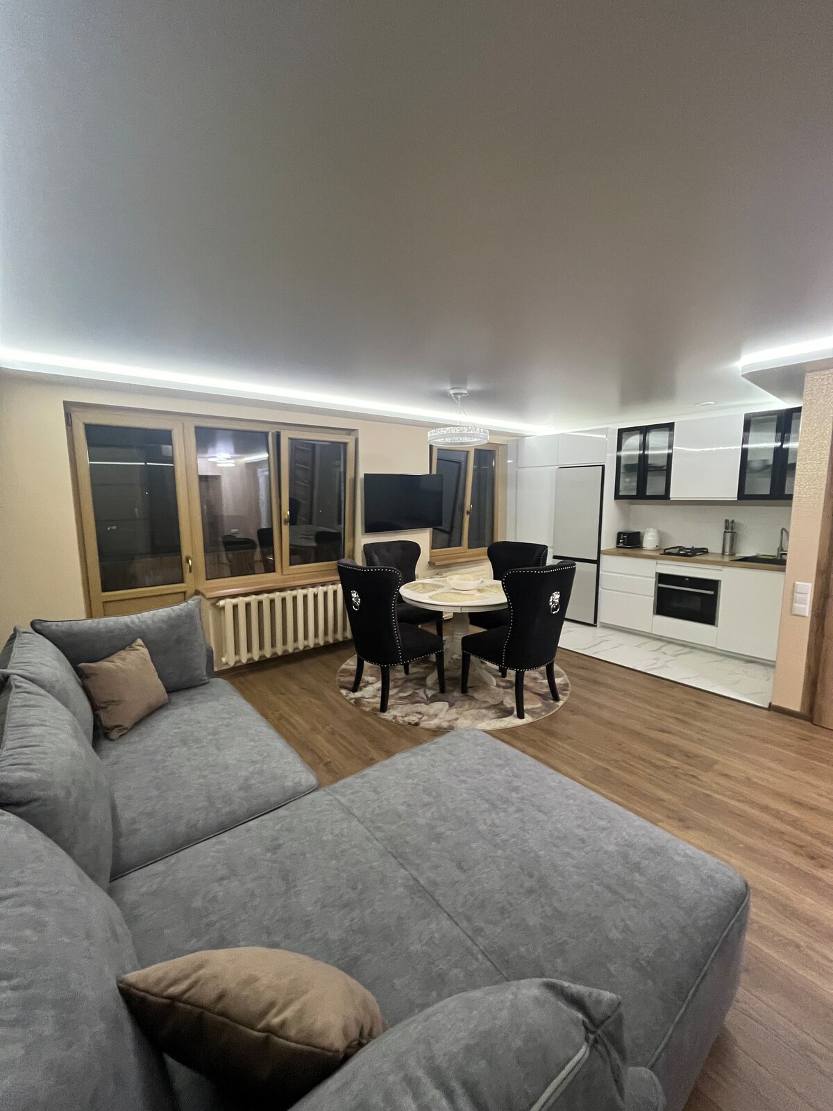 Apartments in the heart of the city, in front of the church, located on a promenade (very convenient for families with kids), really close to an aqua park, spa, shops and restaurants. The apartment repared recently and re-equipped with everything necessary: washing machine, dishwasher, microwave, high speed internet, TV, hairdryer, iron. Bedroom with a large double bed. In the living room there is a sofa bed. Also there is a fold-out single bed. A cozy balcony overlooking the quiet courtyard.