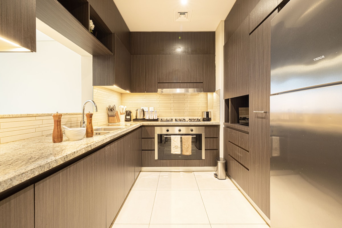 - Revel in expansive balcony views that capture the vibrant energy of the city. - Experience premium entertainment with large Smart TV and gaming console in the lounge. - Cook with ease in a kitchen equipped with all the essentials and modern appliances. - Access to Dubai mall, eateries, and nightlife within a short walk from your doorstep. - Secure your booking now for an unsurpassed urban retreat!
