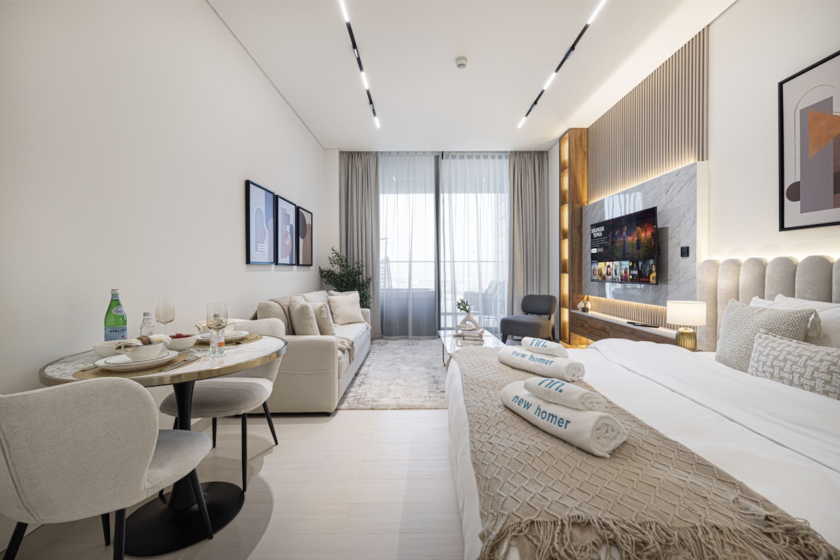 ¡Quédate en lujo de 5 estrellas con la piscina infinita más alta de Dubái! Escápate a nuestro apartamento en la planta 33 en Business Bay, con 1 dormitorio, 1,5 baños y unas vistas impresionantes. Ubicado a solo 5 minutos del centro comercial Dubai Mall y a 4 minutos del Metro, todos los lugares principales están a poca distancia. Oferta exclusiva: ★ Traslados gratuitos al aeropuerto para estancias de más de 21 días. ★ 20 % de descuento en los servicios del edificio, incluidos bares, restaurantes, salón de belleza y spa