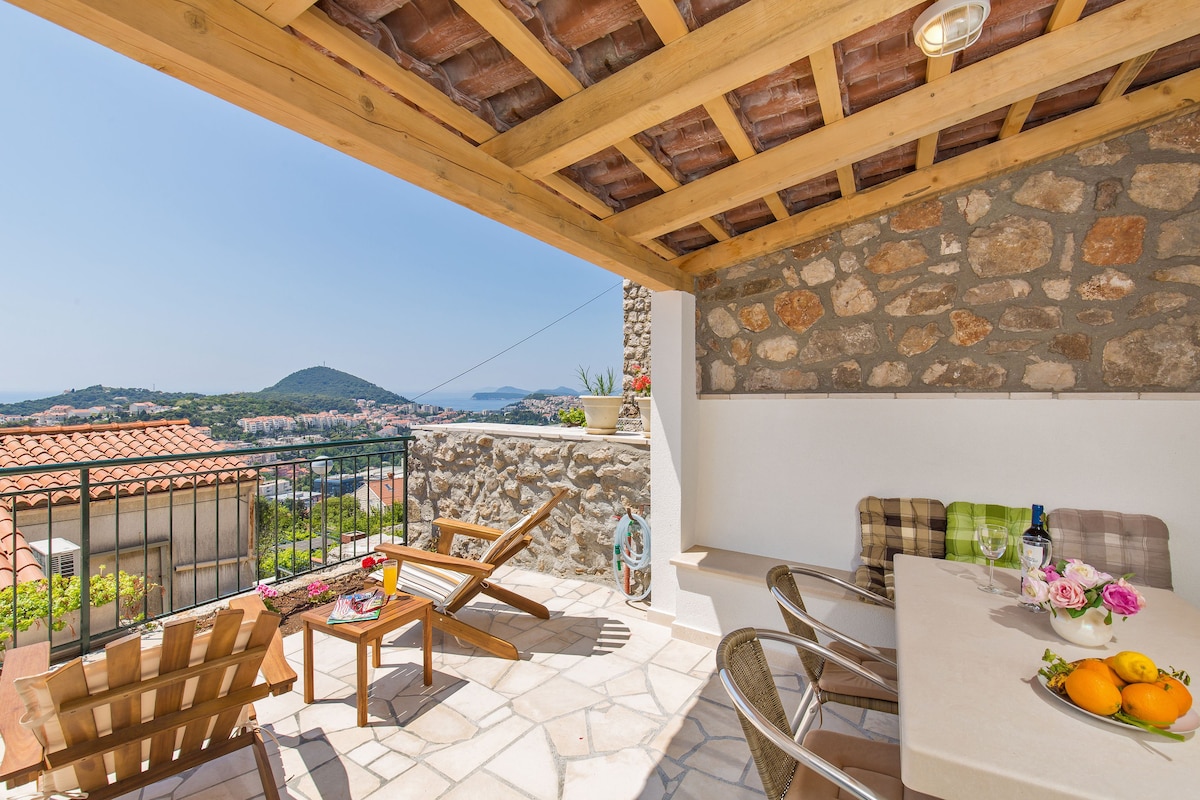 Esta encantadora habitación con balcón amueblado está situada en el ático de la casa familiar que consta de 5 habitaciones. Hay una cama doble para dos personas y un sofá cama. La habitación tiene aire acondicionado y está equipada con TV, nevera, hervidor de agua y wifi gratuito. Tiene su baño privado bien equipado colocado en el pasillo (toallas, gel de ducha, champú proporcionado). Desde su balcón privado puedes disfrutar de las impresionantes vistas panorámicas de los alrededores de Dubrovnik y el mar.