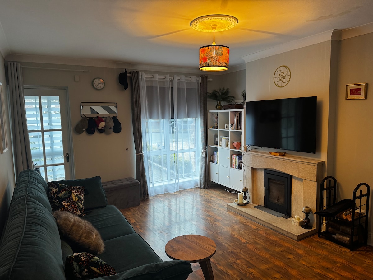 Siéntete como en casa en una casa recién renovada en Deansgrange. 3 dormitorios dobles (también hay 2 colchones individuales disponibles), baño (bañera y ducha) y baño privado (ducha), cocina completa que incluye freidora de aire, cafetera, horno, etc. Asientos de sala de estar para 6 personas y un televisor inteligente. Mesa de comedor con capacidad para 6 Jardín aislado con terraza y plaza de aparcamiento. Perfecto para 6 personas y hasta 8 bajo petición. A unos 30 minutos del centro de Dublín y a 15 de Dun Laoghaire o Blackrock (pueblos costeros). A 100 metros de Deansgrange