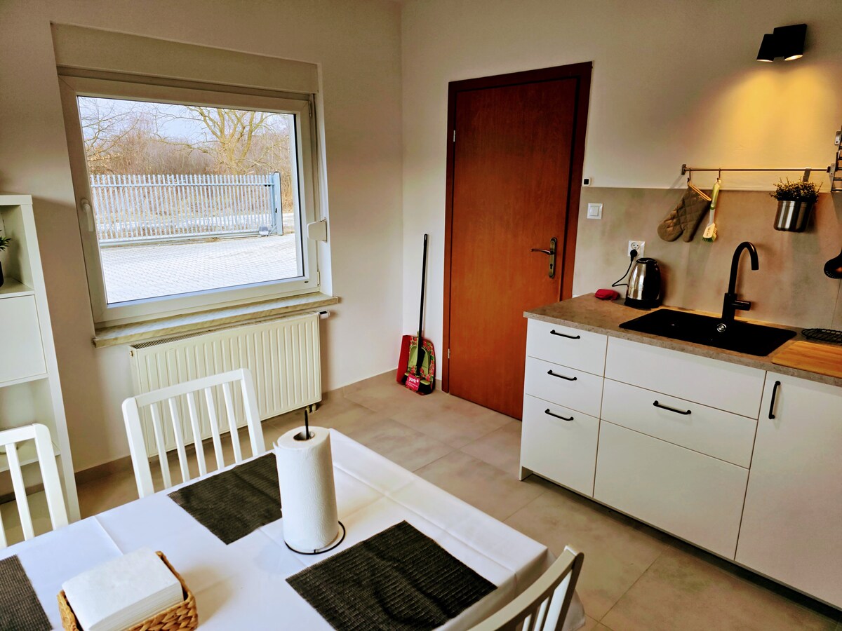 En la planta baja del edificio hay una tienda donde puedes comprar pan fresco para desayunar por la mañana:) ¡El desayuno se puede preparar en la cocina, que tiene todo lo que necesitas! El lugar que alquilamos está en el edificio a nuestro lado. Tiene una entrada independiente. Todo el edificio tiene un total de 5 habitaciones. Estamos disponibles en cualquier momento. Para los huéspedes: estacionamiento gratuito y un hermoso jardín donde puedes relajarte :)