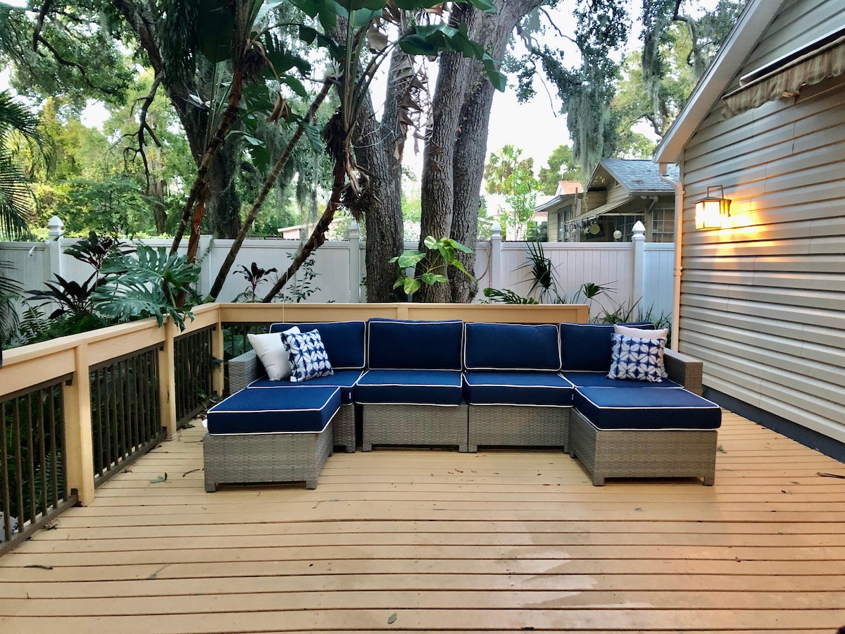 Stay in this charming 1920's cottage, where everything is just a stroll away. Walk to the local restaurants, breweries, and shops on Main St, or take a leisurely walk to the marina for sunsets. With its prime location, it is perfect for exploring the heart of Dunedin on foot. Let’s walk and discover all that this vibrant area has! Your beautifully appointed cottage is a great retreat after beach fun, baseball or biking, and is an easy stroll home after an evening enjoying the local music scene.