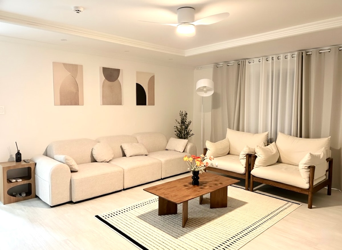 Estación de Gwanggyo Central/Parque Hosu adyacente Galería comercial, Lotte Outlet a 1 minuto a pie Es una ubicación con varias comodidades como Starbucks, Subway, CGV y Kyobo Book Centre en el edificio. Hay un autobús que va a Starfield justo enfrente de la casa. Me interesa mucho el diseño de interiores, así que la ropa de cama, los muebles, No hay nada que no me importe, desde la iluminación hasta las plantas y las copas de vino. Ropa de cama: 3 edredones, 3 colchones, 6 almohadas 1 colchón tamaño queen para el suelo Sofá: Sofá de tela para 3 personas Jacomo Cama: Colchón Zinus, somier Ikea TV: Smart TV Serif de 55 pulgadas Electrodomésticos: Ventilador, aspiradora, secador de pelo, arrocera Nespresso, olla eléctrica, plancha, humidificador, deshumidificador Amenidades: cepillo de dientes desechable/pasta de dientes, espuma limpiadora, jabón de manos, limpiador corporal, champú, tratamiento, loción corporal, crema de manos Vajilla: olla, sartén, tenedor, tenedor para niños, cuchillo, platos, copas de vino, tazas, condimentos, agua mineral Otros: Libros/revistas, botiquín, juegos de mesa Se aceptan estadías largas. 10 % de descuento para estadías de más de 7 días 15% de descuento por mes y 20% de descuento por más de 8 semanas.
