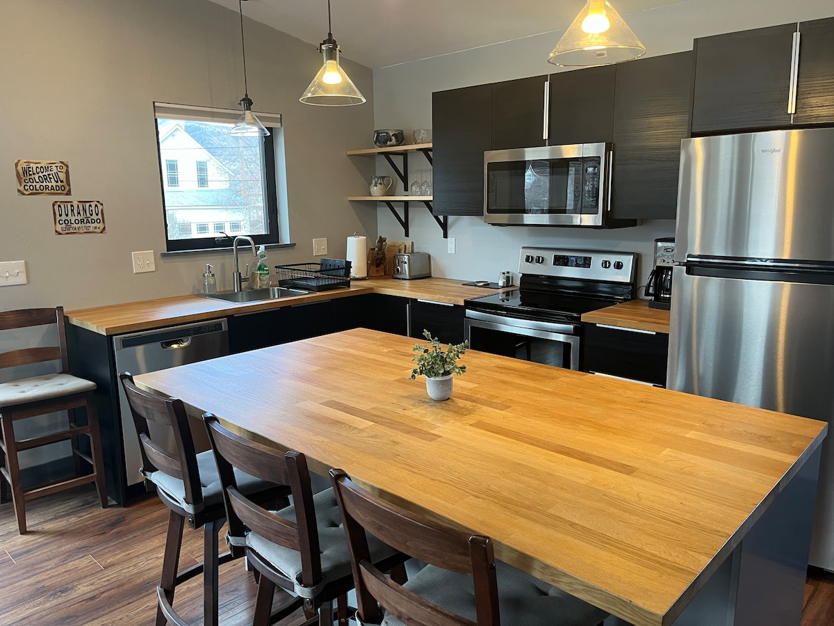 This 1-bedroom, contemporary apartment was built in 2020 and is ready for you to enjoy Durango. Come stay in the heart of Old Animas City, a 4-minute trolley ride from downtown. On the north side of town, you'll enjoy walking to several local restaurants, rec center/pool, river trail, grocery store, and hiking trails. In the summer time, relax on the front deck while you overlook beautiful Animas Mountain. City of Durango Vacation Rental Permit #14-189