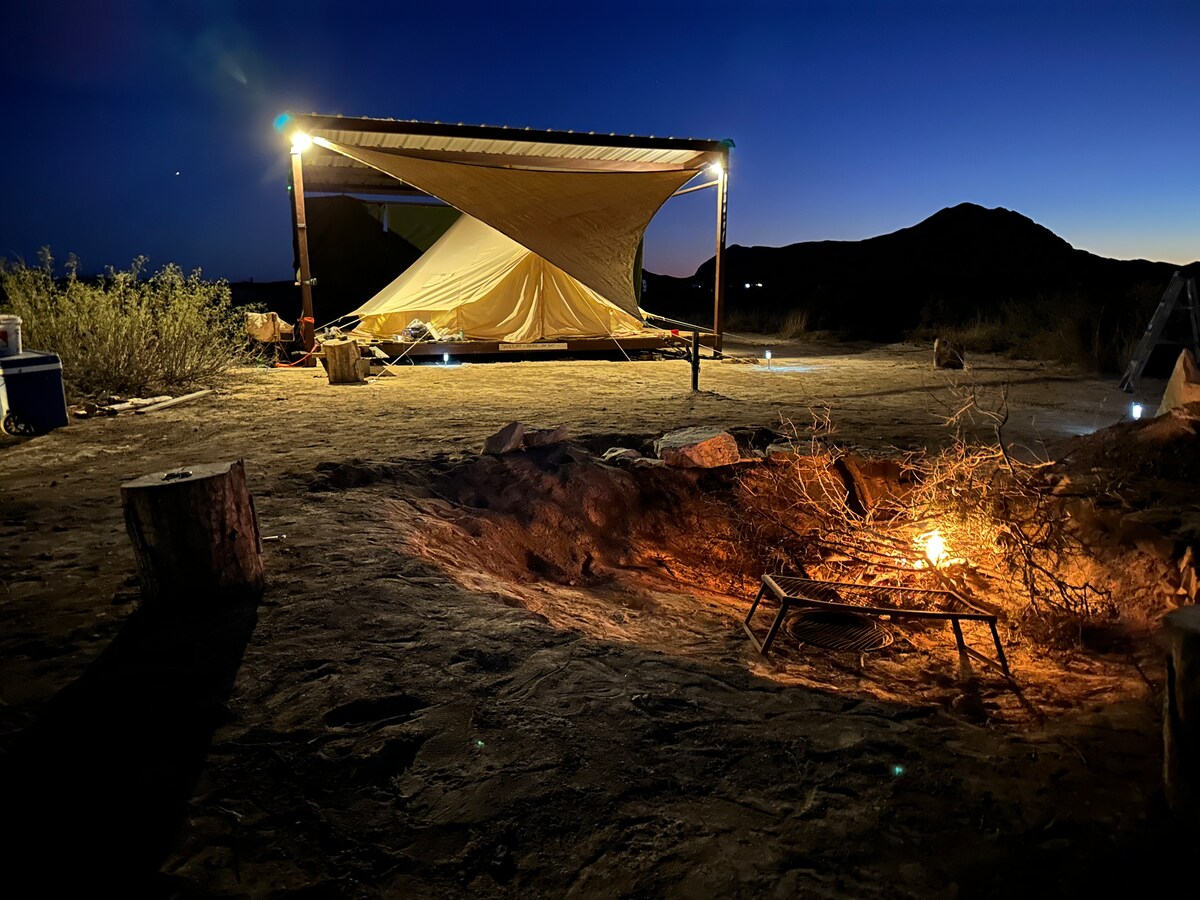 Disfruta de vistas de 360° de la belleza del desierto Y la comodidad de una cama tamaño queen suave, ducha de agua caliente y estación de carga personal en nuestra propiedad de 320 acres fuera de la red. Campings ⛺️ privados 📍A 25 minutos de las dunas, las cascadas de Zapata, las aguas termales y mucho más. También tendrás acceso a: • Cocina exterior compartida y fregadero • Parrilla y barbacoa Blackstone • Baños interiores compartidos (en coche o a pie) • Hogueras grupales y privadas • Hamacas para observar las estrellas ESTAMOS EN UN DESIERTO ¡Así que prepárate para el clima del desierto!🏜️