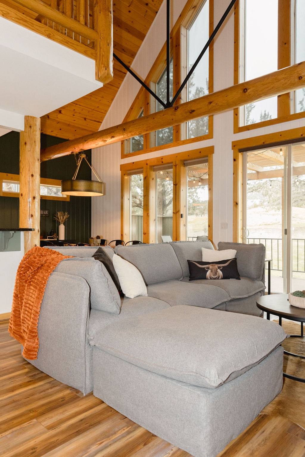 Este chalet Eagle Crest original está situado en el centro. Los techos abovedados y la planta abierta lo convierten en el lugar perfecto para pasar con familiares y amigos. Hermosos suelos de pino nudoso, paredes, vigas y techo. La casa consta de 3 dormitorios (4 camas, 1 tamaño king en el dormitorio principal, 1 tamaño queen y una litera que consta de una cama completa y una litera individual). Ya sea que estés afuera disfrutando de tu café por la mañana o relajándote en el jacuzzi en una noche fresca, este es el lugar perfecto para disfrutar de tu escapada a Central Oregon.