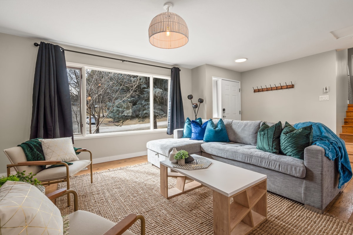 Bienvenido a un alojamiento excepcional en Calgary que combina el espacio de una casa adosada de varios pisos con la flexibilidad de una suite privada, dos unidades combinadas a la perfección en un elegante refugio. Con 4 dormitorios, 3,5 baños e interiores cuidadosamente diseñados en tonos blancos, grises y verde azulado, esta casa es perfecta para familias, grupos o viajeros de larga estancia que valoran la privacidad, el flujo y la comodidad. Situado en una vibrante comunidad urbana, disfrutarás de un diseño limpio, toques de lujo y una separación inteligente del espacio, incluyendo